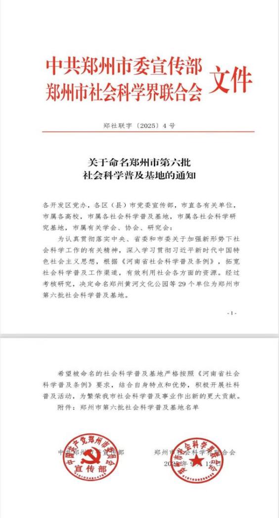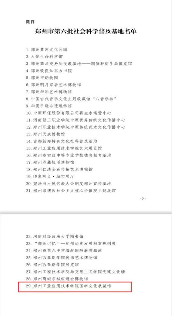 注:“郑州工业应用技术学院国学文化展览馆”获批郑州市社会科学普及基地