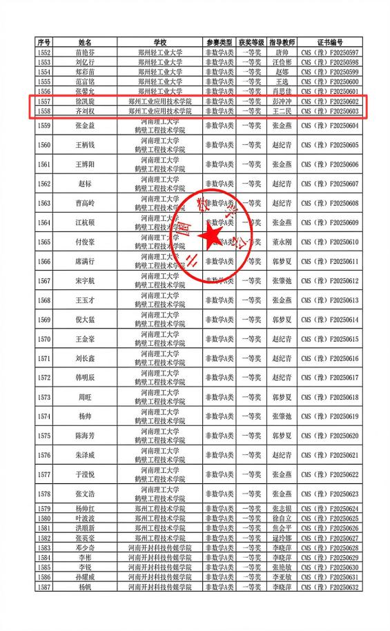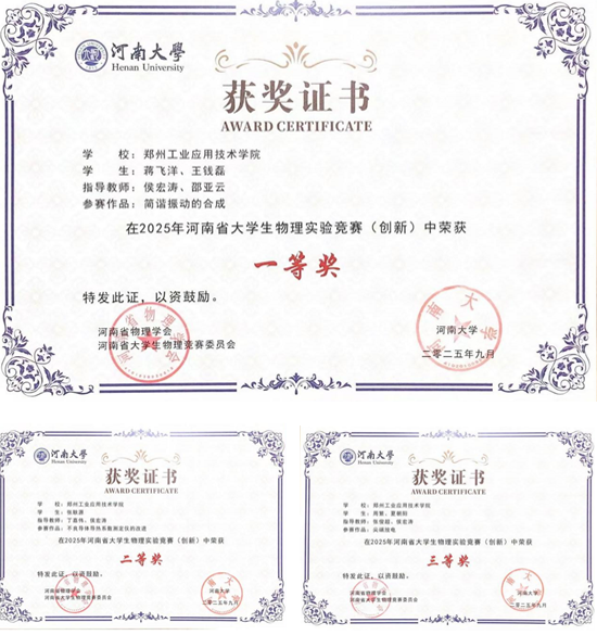 注:2025年河南省大学生物理实验竞赛(创新)部分所获证书。