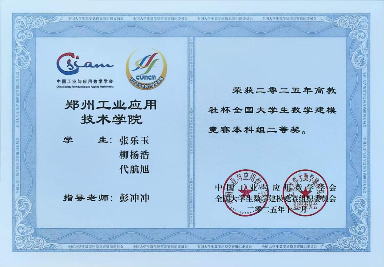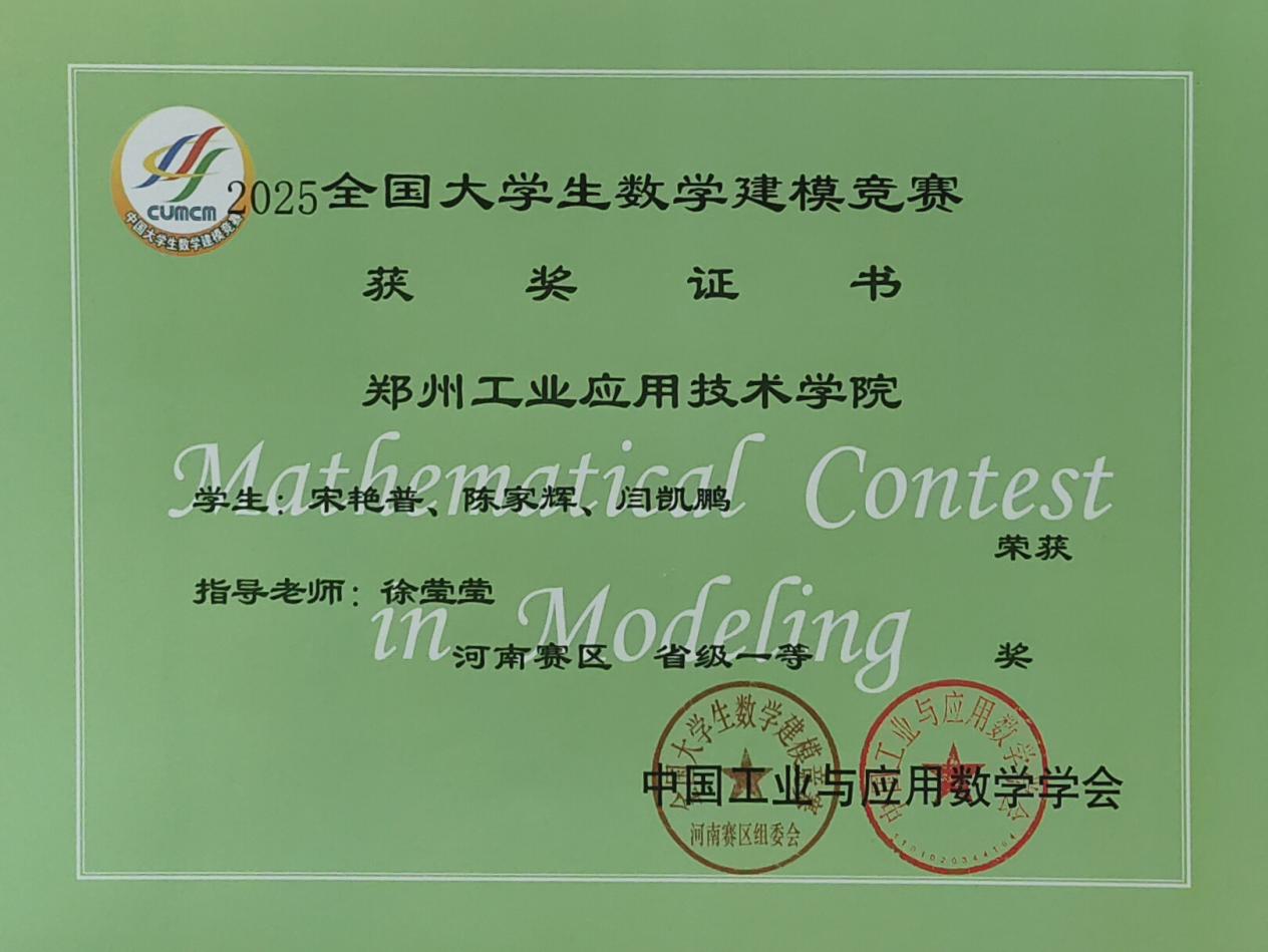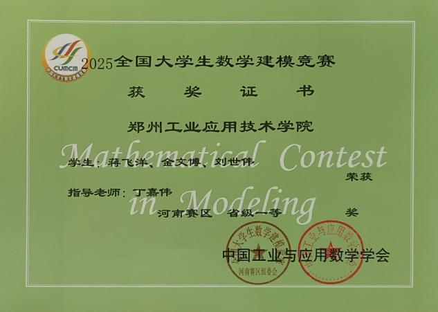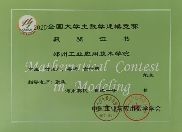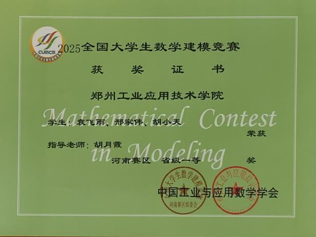注:我校首获全国大学生数学建模竞赛国家级奖项