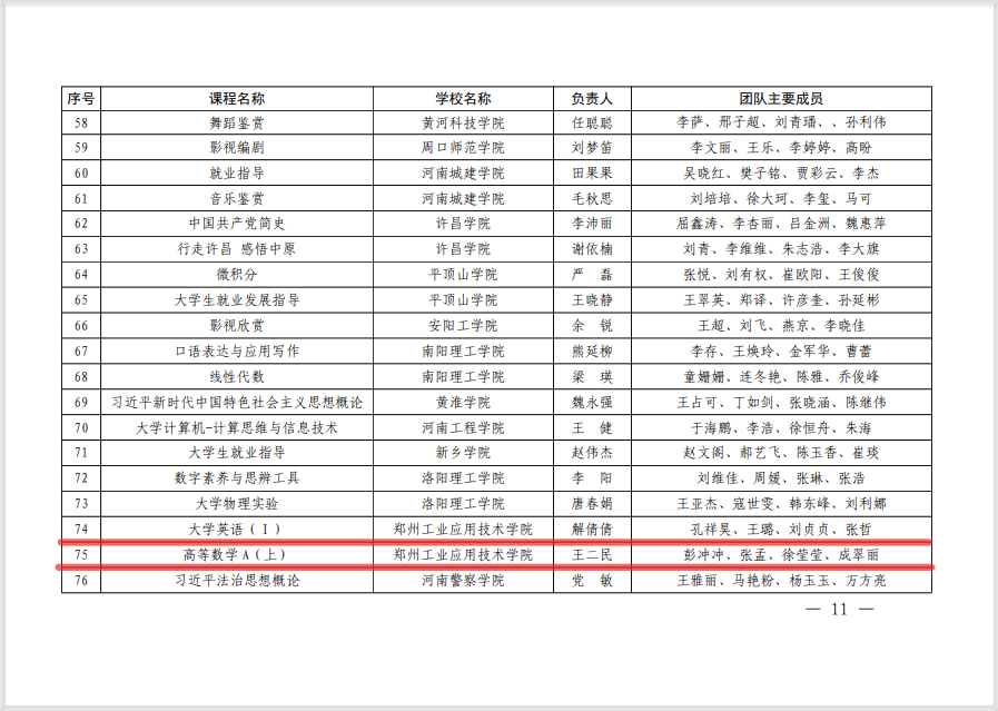 2.高等数学A(上)获批河南省通识教育精品课程,实现该类省级项目零突破。