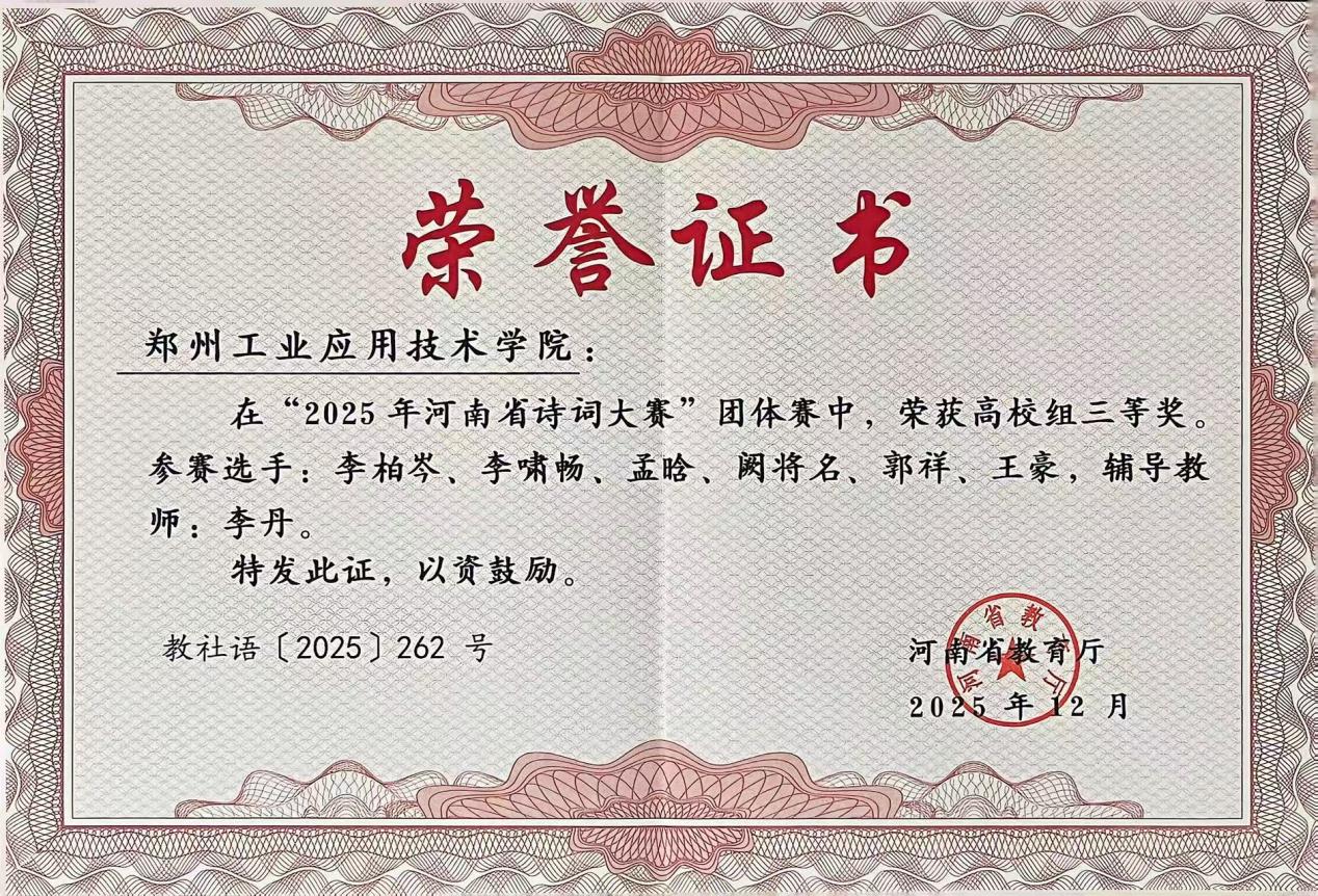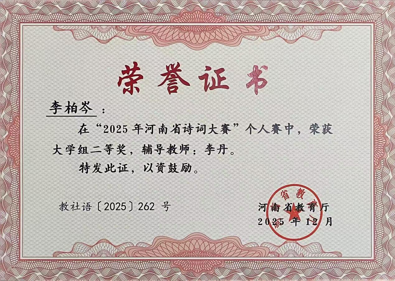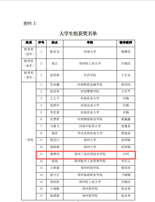 注:十一届河南省汉字大赛中获高校组一等奖、二等奖与三等奖各一项