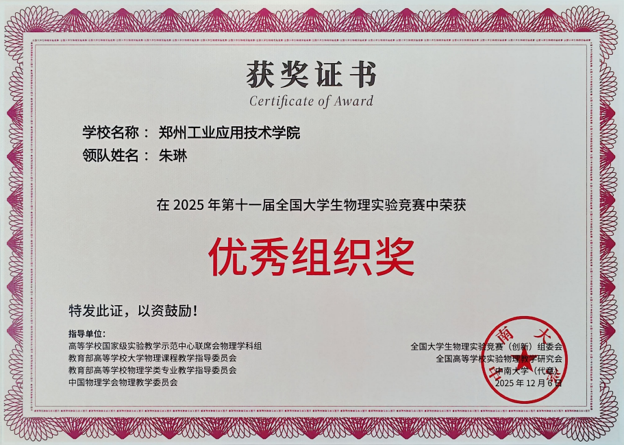 注:在2025年第十一届全国大学生物理实验竞赛中获优秀组织奖