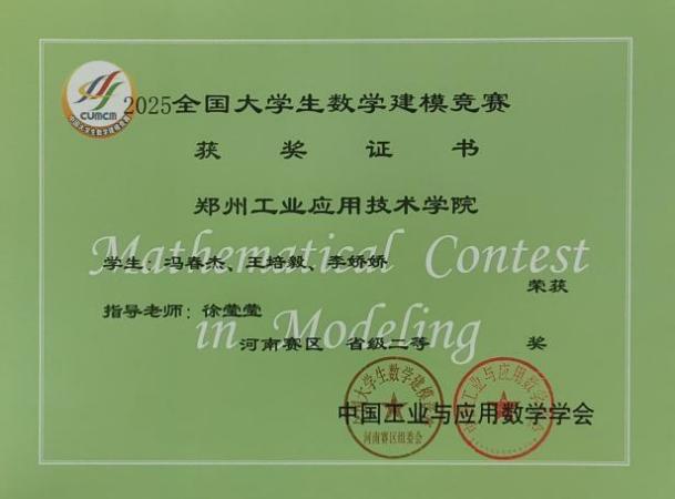 注:2025全国大学生数学建模竞赛省赛部分获奖证书