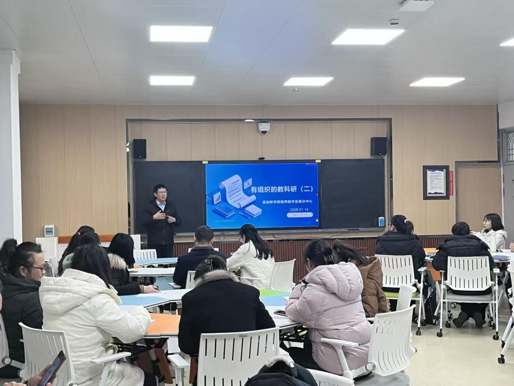 为强基赋能、通过教科研组织化进一步提升教学质量和育人质量,2026年1月14日下午,基础教学部在建工南楼101教室接续开展“有组织的教研科研(二):学科建设、学术研究与创新”专题培训。培训由基础教学部主任贾灵充主讲,基础教学部全体教师参加。